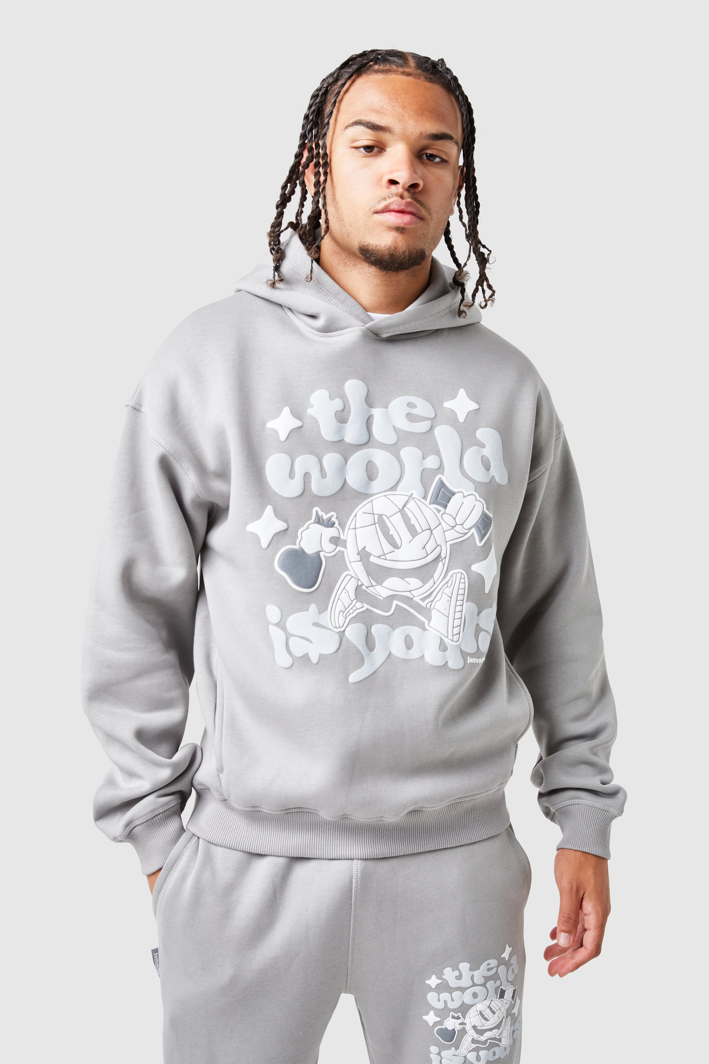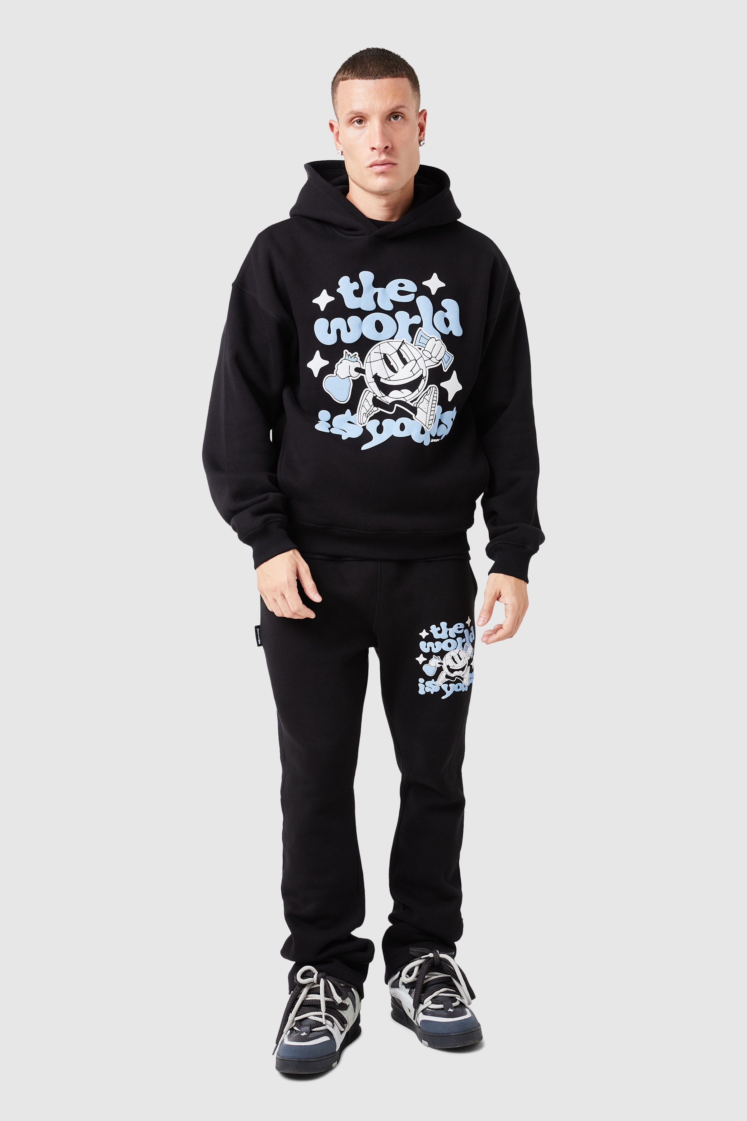 Designed with a relaxed, drop-shoulder fit, the World Is Yours Hood offers ultimate comfort crafted from 100% cotton. Featuring a bold graphic screen print and ribbed cuffs and hem, it pairs perfectly with the matching fleece jogger for a complete look.