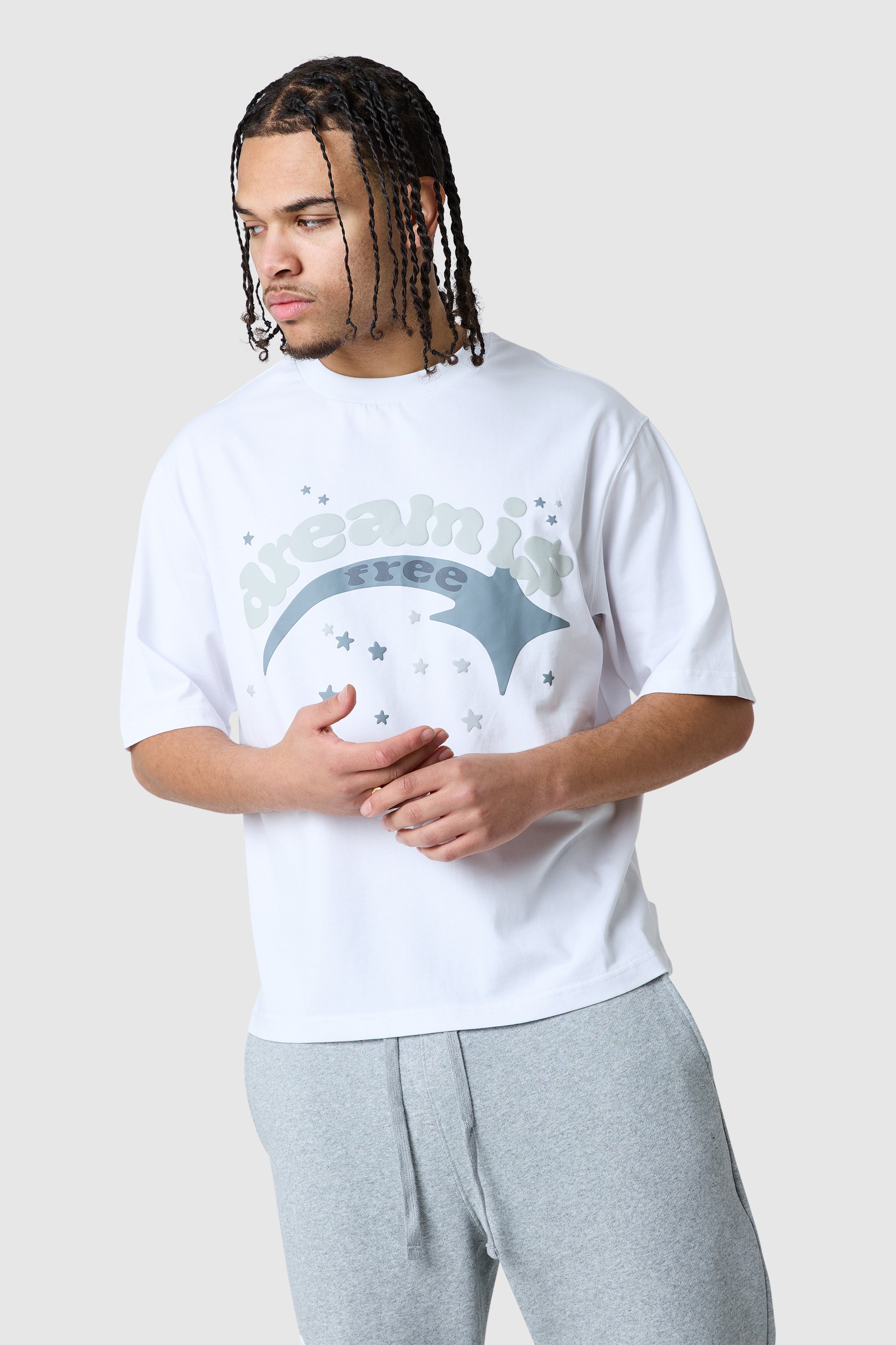 A relaxed silhouette with a dropped shoulder, the Shooter Tee features a front graphic print that defines its statement identity. Complete the look with the matching relaxed Jogger.