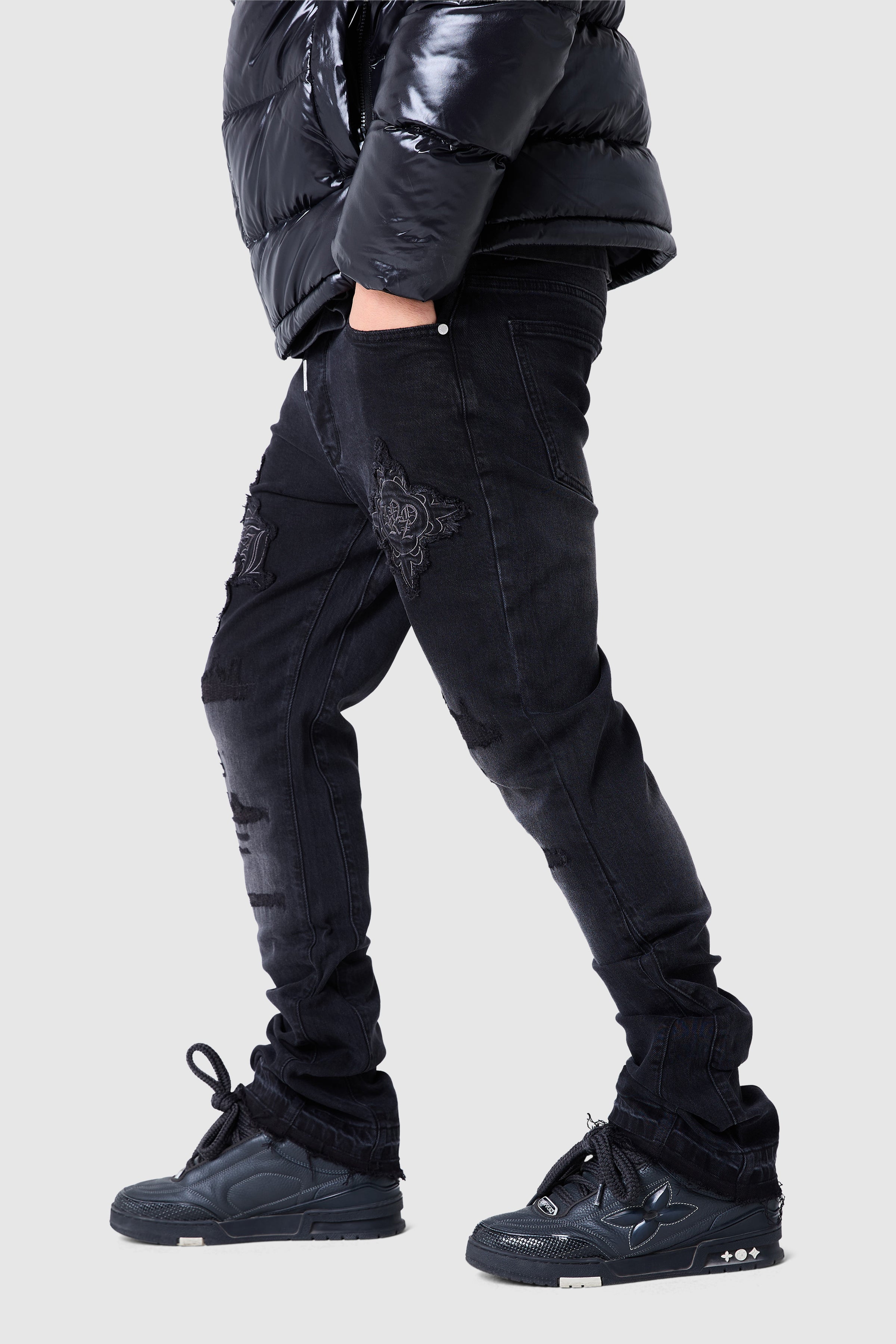 A sleek silhouette with a modern flare. The Icon Patch Jean features a slim fit through the hip and thigh with a wider leg, crafted from premium stretch denim for comfort and movement.