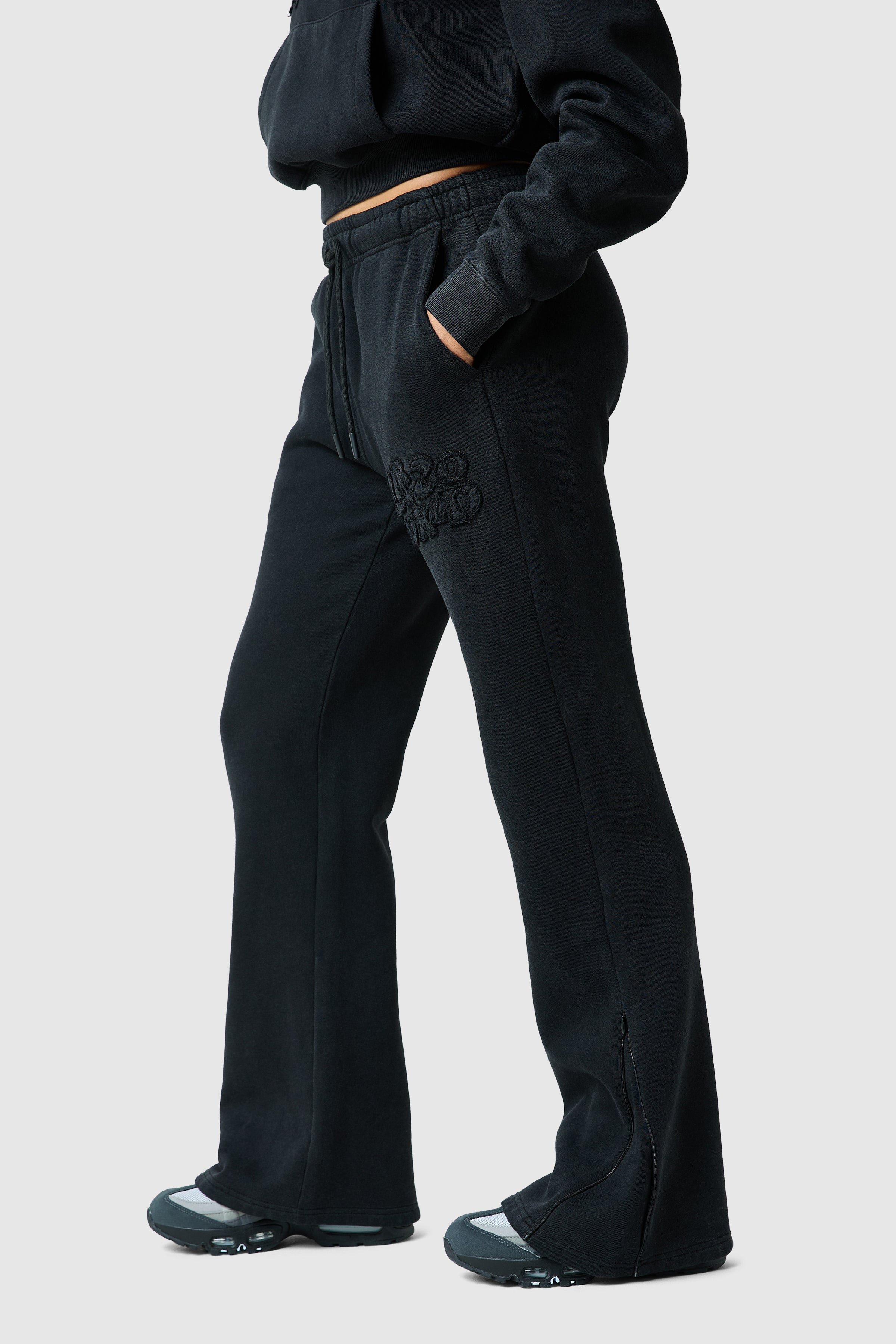 The LRZO Wrld Black Applique Jogger - a statement set that blends comfort with street precision. The wide-leg joggers balance the look with a relaxed fit, drawstring waist, and matching applique detail. Clean, bold, and built for all-day movement.