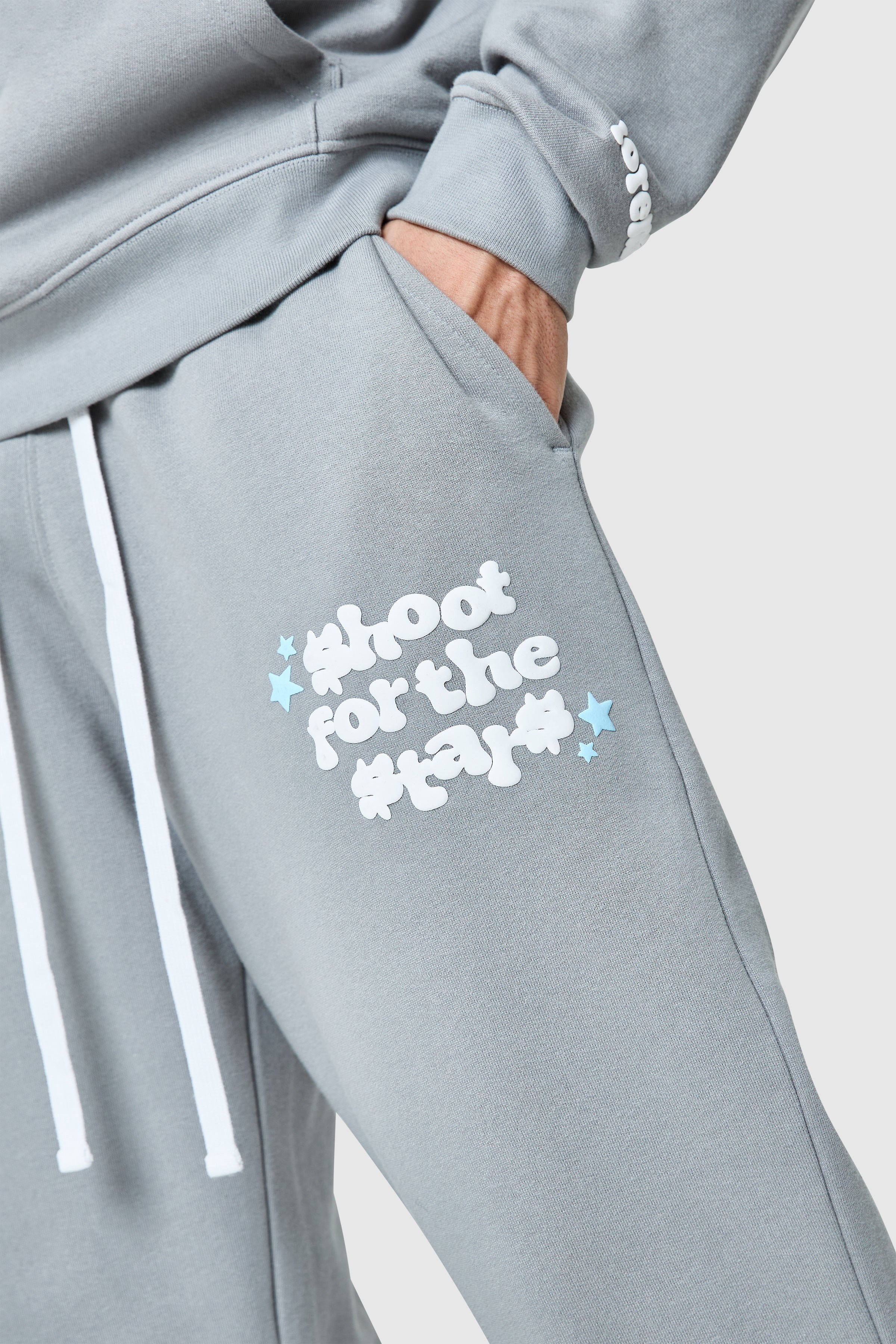 Introducing the Shoot For The Stars Tracksuit. Featuring a bold graphic puff print and ribbed cuffs and hem hood and a wide leg jogger, Shoot for the Stars is a new staple.