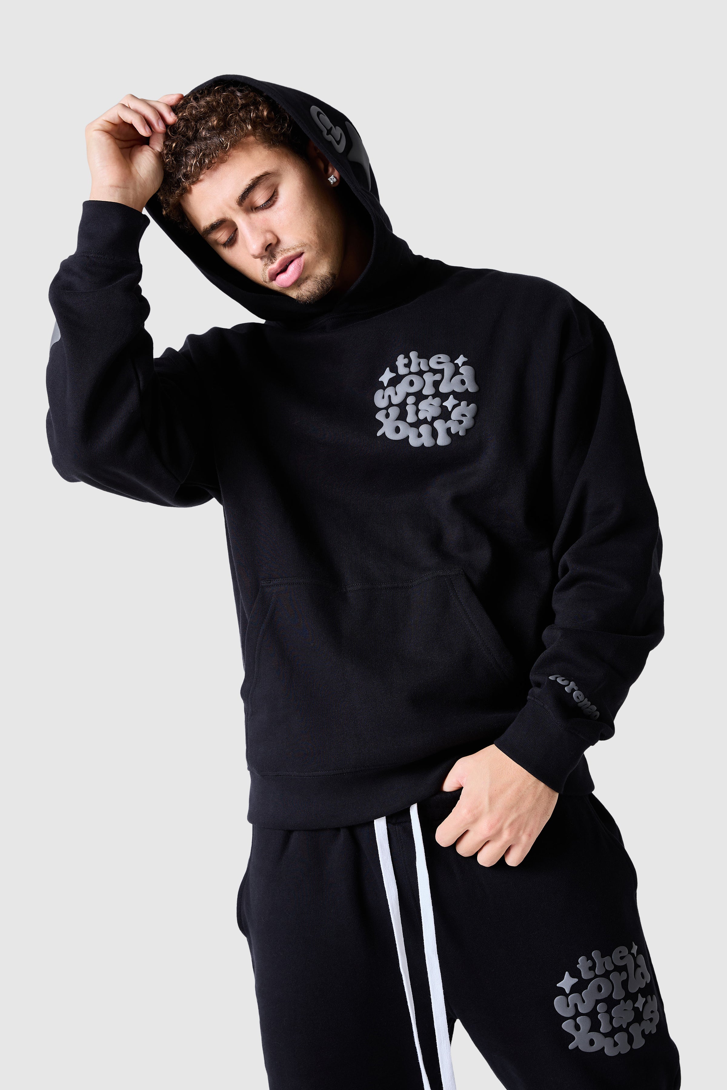 Designed for all-day comfort and bold expression, the World Is Yours Tracksuit features a relaxed hood and flared jogger silhouette. With striking graphic prints and premium fleece construction, this set delivers laid-back confidence with streetwear edge. Style together for a full look or separately to elevate your everyday fits.